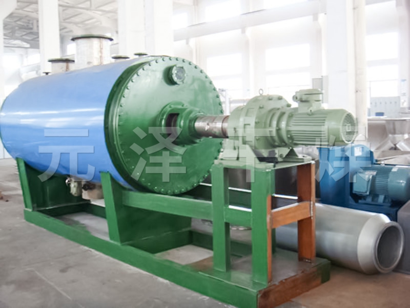 空氣經(jīng)過(guò)濾和加熱,進(jìn)入干燥器頂部空氣分配器,熱空氣呈螺旋狀均勻地進(jìn)入干燥室。料液經(jīng)塔體頂部的高速離心霧化器,(旋轉(zhuǎn))噴霧成極細(xì)微的霧狀液珠,與熱空氣并流接觸在極短的時(shí)間內(nèi)可干燥為成品。成品連續(xù)地由干燥塔底部和旋風(fēng)分離器中輸出,廢氣由風(fēng)機(jī)排空。