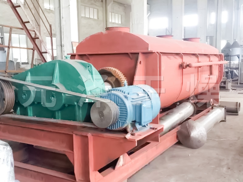 高嶺土專用槳葉干燥機(jī)的空心軸上密集排列著楔型中空漿葉,熱介質(zhì)經(jīng)空心軸流經(jīng)漿葉。單位有效容積內(nèi)傳熱面積很大,熱介質(zhì)溫度從-40℃到320℃,可以是水蒸汽,也可以是液體型:如熱水、導(dǎo)熱油等。間接傳導(dǎo)加熱,沒(méi)有攜帶空氣帶走熱量,熱量均用來(lái)加熱物料。熱量損失僅為通過(guò)器體保溫層向環(huán)境的散熱。楔型漿葉傳熱面具有自清潔功能。物料顆粒與楔型面的相對(duì)運(yùn)動(dòng)產(chǎn)生洗刷作用,能夠洗刷掉楔型面上附著物料,使運(yùn)轉(zhuǎn)中一直保持著清潔的傳熱面。漿葉干燥機(jī)的殼體為Ω型,殼體內(nèi)一般安排二到四根空心攪拌軸。殼體有密封端蓋與上蓋,防止物料粉塵外泄而充分發(fā)揮作用。