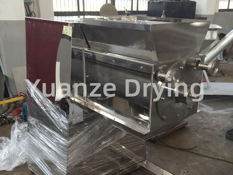 This machine is suitable for granulation in industries such as pharmaceuticals, food, chemicals, and solid beverages. It can make the stirred materials into particles of the required size, or break the agglomerated materials into small particles.
