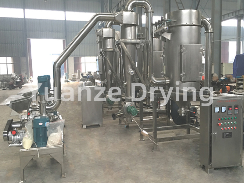 This series of micro crushers consists of three parts: the main engine, auxiliary engine, and electrical control. It is compact in design, has a reasonable structure, and is equipped with air selection, no screen, and no mesh. The machine is equipped with a grading mechanism, which can complete crushing and grading in one go. Negative pressure conveying allows the heat generated in the chamber during the crushing operation to be continuously discharged, making it also suitable for the crushing of heat sensitive materials. This machine has a wide range of applications, with continuous production processes and adjustable discharge particle size; Can handle the crushing and grading of various materials such as chemicals, food, pharmaceuticals, cosmetics, dyes, resins, shells, etc.
