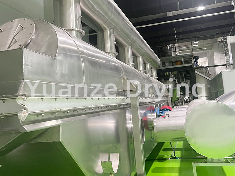 The material enters the machine from the feeding port, and under the action of vibration, the material is thrown forward continuously in the horizontal direction. The hot air passes through the fluidized bed and exchanges heat with the wet material. The wet air is removed by the cyclone separator and discharged through the exhaust port, while the dry material is discharged through the exhaust port.