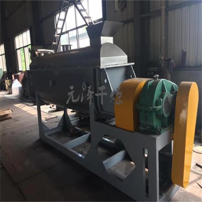 空心軸上密集排列著楔型中空槳葉,熱介質(zhì)經(jīng)空心軸流經(jīng)槳葉。單位有效容積內(nèi)傳熱面積很大,熱介質(zhì)溫度從-40℃到320℃,可以是水蒸汽,也可以是液體型:如熱水、導熱油等。間接傳導加熱,沒有攜帶空氣帶走熱量,熱量均用來加熱物料。熱量損失僅為通過器體保溫層向環(huán)境的散熱。楔型槳葉傳熱面具有自清潔功能。物料顆粒與楔型面的相對運動產(chǎn)生洗刷作用,能夠洗刷掉楔型面上附著物料,使運轉(zhuǎn)中一直保持著清潔的傳熱面。漿葉干燥機的殼體為Ω型,殼體內(nèi)一般安排二到四根空心攪拌軸。殼體有密封端蓋與上蓋,防止物料粉塵外泄而充分發(fā)揮作用。