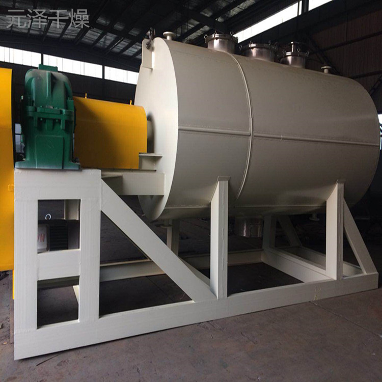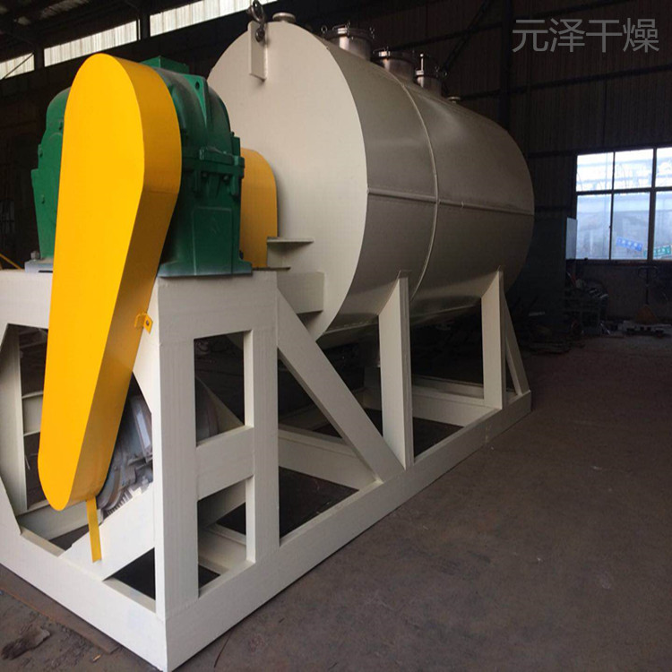 被干燥物料從殼體上方正中間加入,在不斷轉(zhuǎn)動的耙齒的攪拌下,物料與殼體壁接觸時,表面不斷更新,被干燥物料受到蒸汽間接加熱,而使物料水分氣化,氣化的水分由真空泵及時抽走,該機(jī)可同時采用夾層與耙齒同時加熱方式,傳熱面積更大,熱效率高,使其獲得更高的干燥效率。由于操作真空度較高,被干燥物料表面水蒸氣壓力遠(yuǎn)大于干燥機(jī)殼體內(nèi)蒸發(fā)空間的水蒸氣壓力,從而有利于被干燥物料內(nèi)部水分和表面水分的排出,有利于被干燥物料的水分子運動,達(dá)到干燥目的。