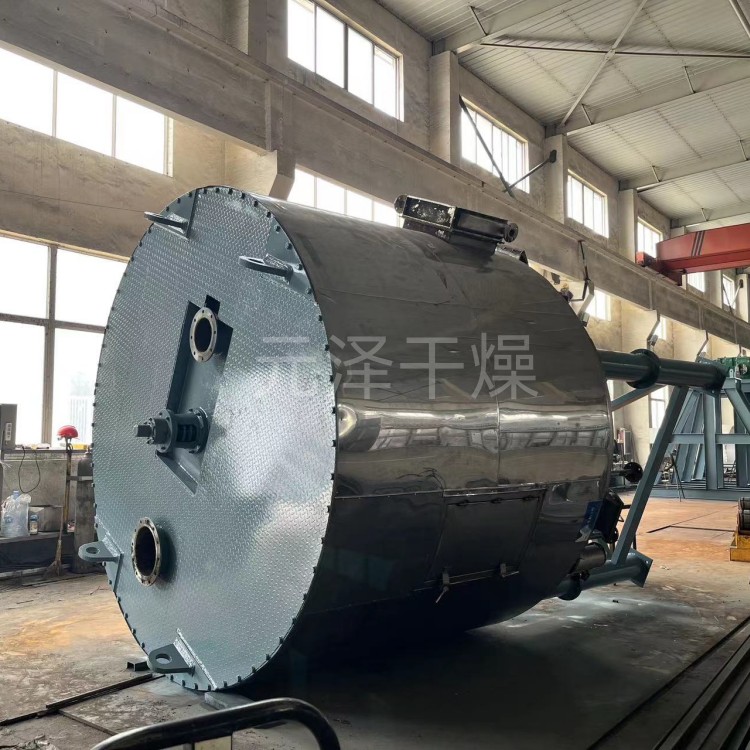 盤式干燥機(jī)是在間歇攪拌傳導(dǎo)干燥器的基礎(chǔ)上,綜合了一系列先進(jìn)技術(shù),經(jīng)過不斷改進(jìn)而研制開發(fā)的一種多層固定空心加熱圓形載料盤、轉(zhuǎn)耙攪拌、立式連續(xù)的以熱傳導(dǎo)為主的干燥設(shè)備。這種干燥過程,就是將載熱體通入各層空心圓盤內(nèi),以熱傳導(dǎo)的方式間接加熱盤面上所放置的濕物料,在轉(zhuǎn)動(dòng)耙葉的刮耙作用下,使不斷移動(dòng)翻滾的物料內(nèi)的濕份在操作溫度下蒸發(fā),其蒸汽隨設(shè)備尾氣排出,從而在設(shè)備底部連續(xù)地獲取合格的干燥成品。
