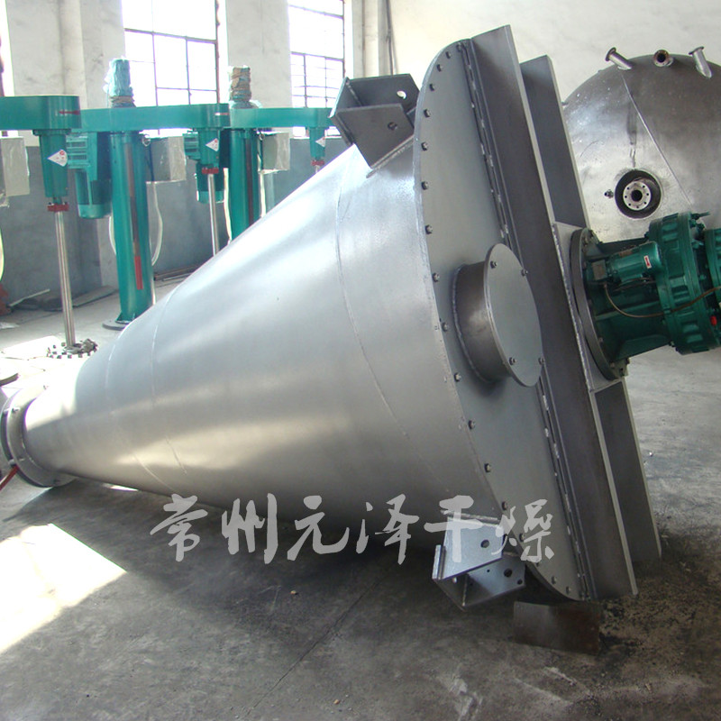螺帶真空干燥機(jī)是一種利用螺帶將物料旋轉(zhuǎn)提升及圓錐夾套、空心螺帶內(nèi)同時(shí)通入傳熱介質(zhì)(如熱水、導(dǎo)熱油、蒸汽等),使加熱后物料從四周提升并從中間下落,快速不斷的循環(huán)翻轉(zhuǎn),并通過(guò)筒體內(nèi)抽真空將水汽及時(shí)帶走, 使物料在短時(shí)間內(nèi)達(dá)到干燥和混合目的。