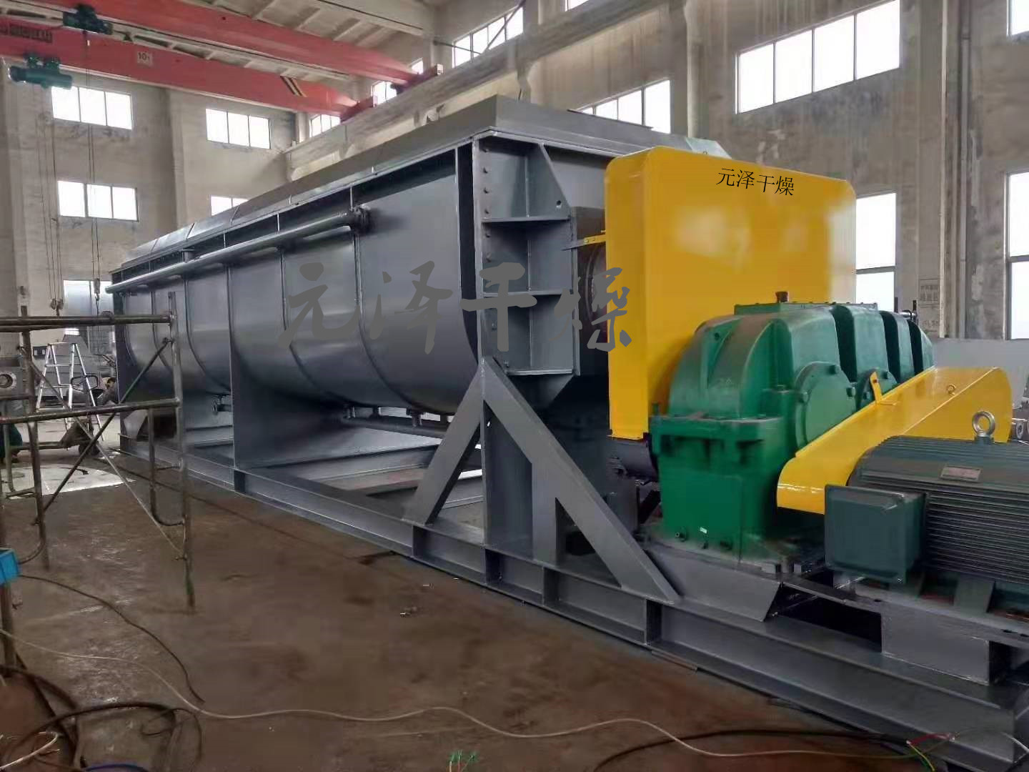 空心軸上密集排列著楔型中空漿葉,熱介質(zhì)經(jīng)空心軸流經(jīng)漿葉。單位有效容積內(nèi)傳熱面積很大,熱介質(zhì)溫度從-40℃到320℃,可以是水蒸汽,也可以是液體型:如熱水、導(dǎo)熱油等。間接傳導(dǎo)加熱,沒有攜帶空氣帶走熱量,熱量均用來加熱物料。熱量損失僅為通過器體保溫層向環(huán)境的散熱。楔型漿葉傳熱面具有自清潔功能。物料顆粒與楔型面的相對運動產(chǎn)生洗刷作用,能夠洗刷掉楔型面上附著物料,使運轉(zhuǎn)中一直保持著清潔的傳熱面。漿葉干燥機的殼體為Ω型,殼體內(nèi)一般安排二到四根空心攪拌軸。殼體有密封端蓋與上蓋,防止物料粉塵外泄而充分發(fā)揮作用。