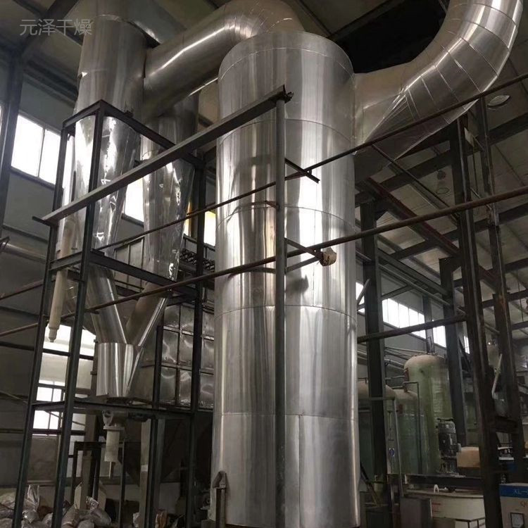 氣流干燥機(jī)熱空氣進(jìn)入干燥器后快速?zèng)_擊物料并在瞬間與物料充分混合使物料流態(tài)化與空氣的接觸面積最大化從而迅速蒸發(fā)水份,氣固兩相經(jīng)過除塵分離后得到產(chǎn)品。脈沖氣流干燥是在直管氣流干燥器的基礎(chǔ)上增加了較粗的緩沖管目的是增加氣固兩相的相對(duì)運(yùn)動(dòng)過程從而提高干燥速率。適用于粘性不大或無粘性的濾餅裝物料的干燥,一般干燥之前需經(jīng)過機(jī)械脫水。氣流干燥機(jī)的干燥時(shí)間較短一般為1-4秒,產(chǎn)品在溫度還未升高之前已經(jīng)離開了干燥器,所以適合熱敏性物料干燥。