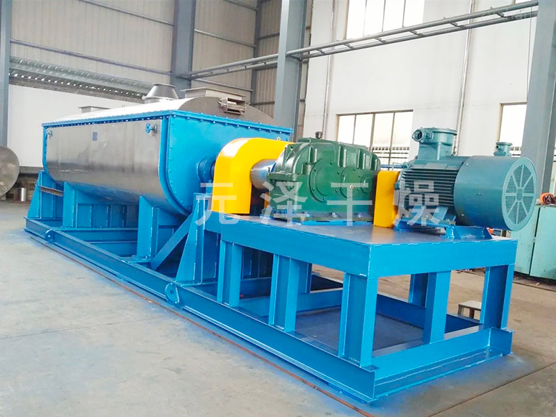 空心軸上密集排列著楔型中空漿葉,熱介質(zhì)經(jīng)空心軸流經(jīng)漿葉。單位有效容積內(nèi)傳熱面積很大,熱介質(zhì)溫度從-40℃到320℃,可以是水蒸汽,也可以是液體型:如熱水、導(dǎo)熱油等。間接傳導(dǎo)加熱,沒有攜帶空氣帶走熱量,熱量均用來加熱物料。熱量損失僅為通過器體保溫層向環(huán)境的散熱。楔型漿葉傳熱面具有自清潔功能。物料顆粒與楔型面的相對運(yùn)動產(chǎn)生洗刷作用,能夠洗刷掉楔型面上附著物料,使運(yùn)轉(zhuǎn)中一直保持著清潔的傳熱面。漿葉干燥機(jī)的殼體為Ω型,殼體內(nèi)一般安排二到四根空心攪拌軸。殼體有密封端蓋與上蓋,防止物料粉塵外泄而充分發(fā)揮作用。