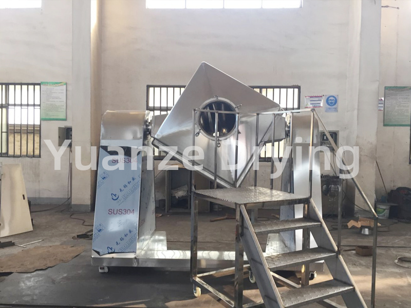 Load the materials into a square conical closed mixing bucket, with the symmetrical axis of the hopper forming an angle with the axis of the rotation axis. Different component materials move in three-dimensional space in the closed hopper, producing strong flipping and diffusion contraction effects, achieving optimal mixing results.