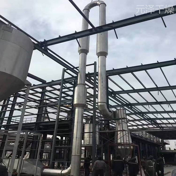 氣流干燥機是利用高速流動的熱氣流使?jié)竦矸蹜腋≡谄渲?。具有傳熱系?shù)高,傳熱面積大,干燥時間短等特點。氣流干燥也稱"瞬間干燥"是固體流態(tài)化中稀相輸送在干燥方面的應用。該法是使加熱介質(zhì)和待干燥固體顆粒直接接觸,并使待干燥固體顆粒懸浮于流體中,因而兩相接觸面積大,強化了傳熱傳質(zhì)過程,廣泛用于散狀物料的干燥單元操作。
