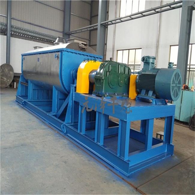 空心軸上密集排列著楔型中空槳葉,熱介質(zhì)經(jīng)空心軸流經(jīng)槳葉。單位有效容積內(nèi)傳熱面積很大,熱介質(zhì)溫度從-40℃到320℃,可以是水蒸汽,也可以是液體型:如熱水、導(dǎo)熱油等。間接傳導(dǎo)加熱,沒有攜帶空氣帶走熱量,熱量均用來加熱物料。熱量損失僅為通過器體保溫層向環(huán)境的散熱。楔型槳葉傳熱面具有自清潔功能。物料顆粒與楔型面的相對(duì)運(yùn)動(dòng)產(chǎn)生洗刷作用,能夠洗刷掉楔型面上附著物料,使運(yùn)轉(zhuǎn)中一直保持著清潔的傳熱面。槳葉干燥機(jī)的殼體為Ω型,殼體內(nèi)一般安排二到四根空心攪拌軸。殼體有密封端蓋與上蓋,防止物料粉塵外泄而充分發(fā)揮作用。