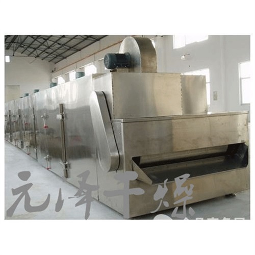 物料由加料器均勻地鋪在網(wǎng)帶上,網(wǎng)帶一般采用12-60目不銹鋼絲網(wǎng),由傳動裝置拖動在干燥機內移動。干燥機由若干單元組成,每一單元熱風獨立循環(huán),部分尾氣由專門排濕風機排出,廢氣由調節(jié)閥控制,熱氣由下往上或由上往下穿過鋪滿物料的網(wǎng)帶完成熱量與質量傳遞的進程,帶走物料水份。網(wǎng)帶緩慢移動,運行速度可根據(jù)物料溫度自由調節(jié),干燥后的成品連續(xù)落入收料器中。上下循環(huán)單元根據(jù)用戶需要可靈活配備,單元數(shù)量亦可根據(jù)需要選取。