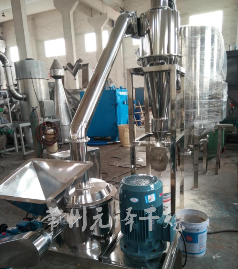 超微粉碎機是利用空氣分離、重壓研磨、剪切的形式來實現(xiàn)干性物料超微粉碎的設(shè)備。它由柱形粉碎室、研磨輪、研磨軌、風(fēng)機、物料收集系統(tǒng)等組成。物料通過投料口進入柱形粉碎室,被沿著研磨軌做圓周運動的研磨輪碾壓、剪切而實現(xiàn)粉碎。被粉碎的物料通過風(fēng)機引起的負壓氣流帶出粉碎室,進入物料收集系統(tǒng),經(jīng)過濾袋過濾,空氣被排出,物料、粉塵被收集,完成粉碎。物料由料門經(jīng)螺旋輸送器進入粉碎室,被高速旋轉(zhuǎn)的刀片剪切粉碎,通過負壓風(fēng)運的方法把物料運入旋風(fēng)分離器,袋式除塵器、排出物料粉塵由吸塵箱經(jīng)布袋過濾回收,生產(chǎn)過程中無粉塵飛揚,且能提高物料的利用率,降低企業(yè)成本。