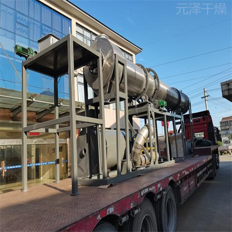 滾筒干燥機的轉(zhuǎn)筒是略帶傾斜并能回轉(zhuǎn)的圓筒體,濕物料從一端上部進入,干物料從另一端下部收集。熱風(fēng)從進料端或出料端進入,從另一端上部排出。筒內(nèi)裝有順向抄板,使物料在筒體回轉(zhuǎn)過程中不斷抄起又灑下,使其充分與熱氣流接觸,以提高干燥效率并使物料向前移動。干燥物料熱源一般為熱空氣、高溫煙道氣、水蒸氣等。